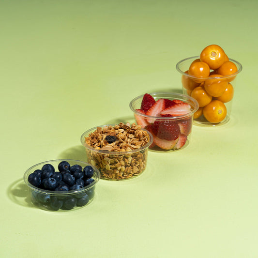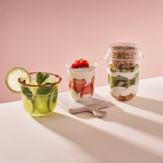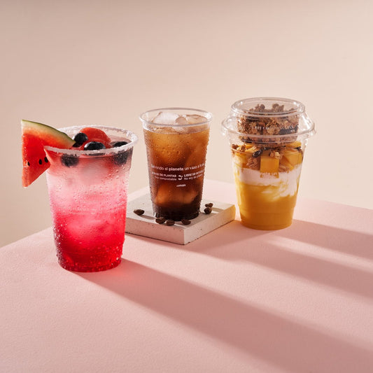 Nuestra propuesta para eliminar los envases plásticos de un solo uso. Fabricados en resina PLA con alta transparencia y cristalinidad, de origen vegetal que no contiene derivados del petróleo, certificados 100% compostables bajo estándares internacionales.