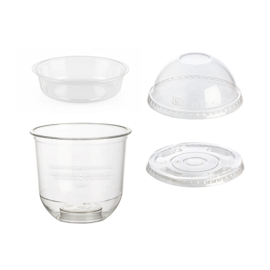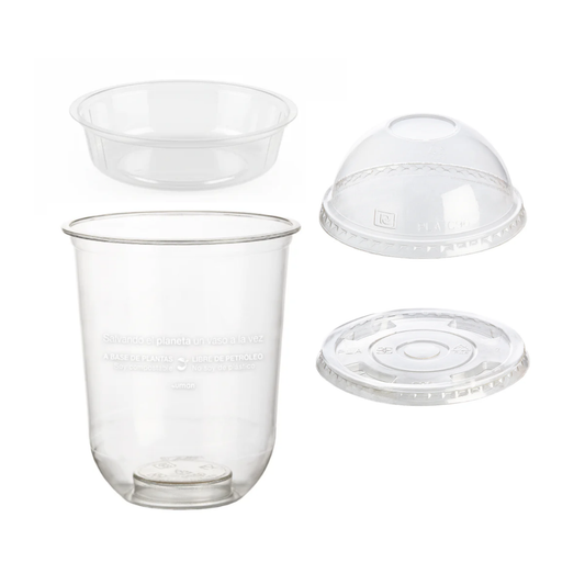 Nuestra propuesta para eliminar los envases plásticos de un solo uso. Fabricados en resina PLA con alta transparencia y cristalinidad, de origen vegetal que no contiene derivados del petróleo, certificados 100% compostables bajo estándares internacionales.